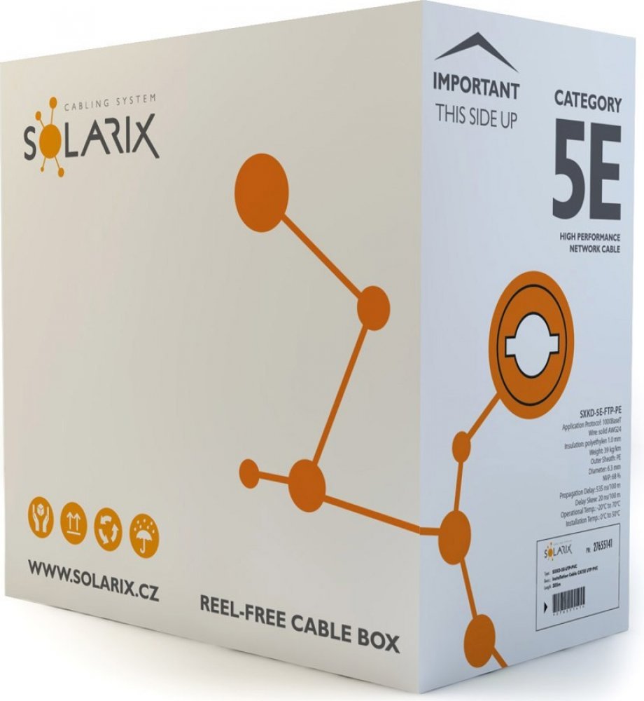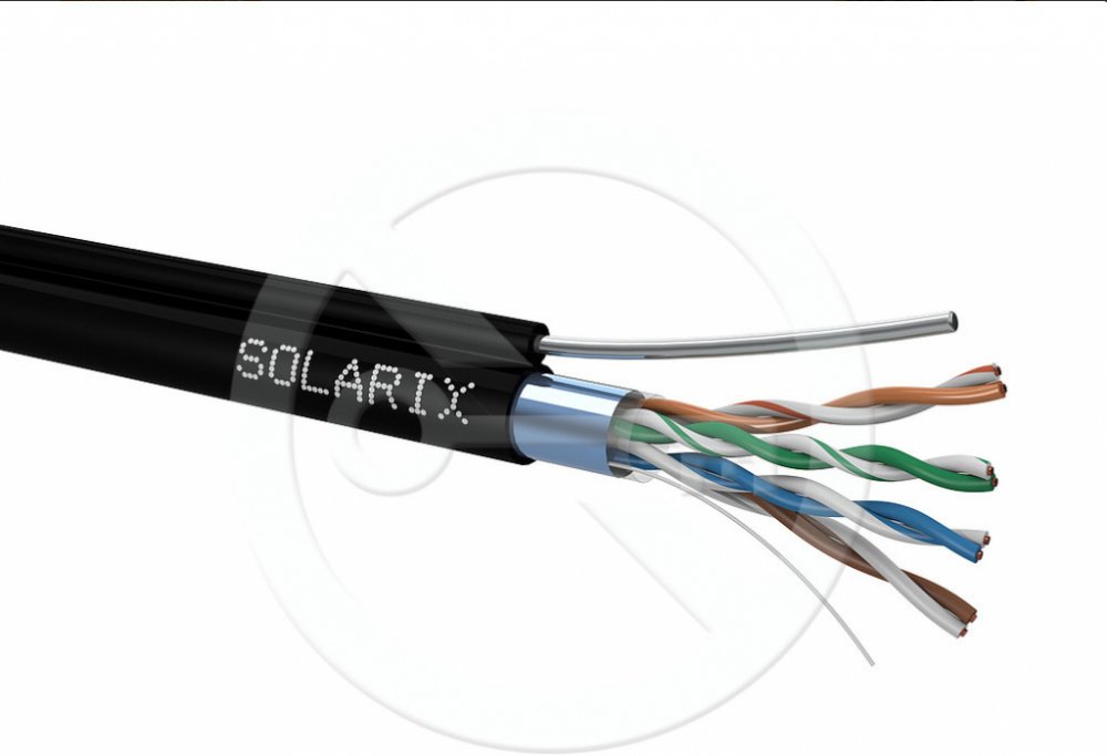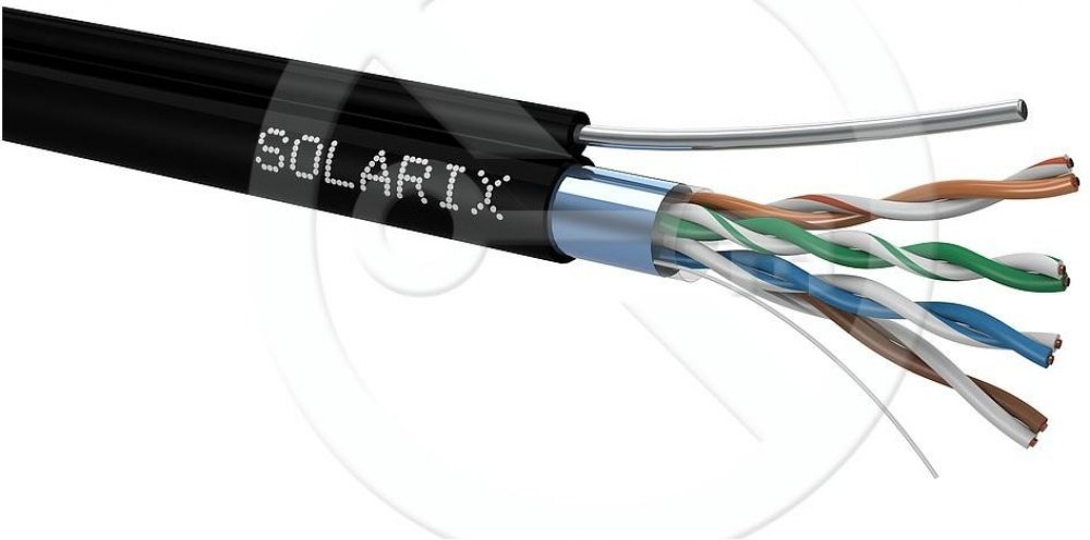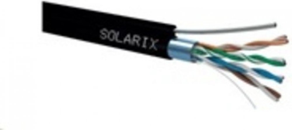 Instalační kabel s označením SXKD-5E-FTP-PE-SAM je venkovní samonosný stíněný kabel CAT5E s polyethylenovým pláštěm. Kabel je určen pro venkovní instalace, kde běžný datový kabel s PVC nebo LSOH pláštěm neposkytuje dostatečnou ochranu proti vlivům okolního prostředí. Tento kabel je navíc vybaven i podpůrným ocelovým drátem umísteným v oddělené izolaci, který umožňuje použít tento kabel jako samonosný, a to až na vzdálenost 70m. Společně s ostatními komponenty systému strukturované kabeláže Solarix vytváří řešení, které zaručuje dlouhou životnost, maximální výkon a bezproblémový chod počítačové sítě. Instalační kabely Solarix – kategorie 5E jsou určeny pro horizontální rozvody a jsou nabízeny ve stíněné i nestíněné verzi s různým typem pláště - tj. PVC, LSOH nebo UV stabilní PE. Tyto kabely bez problémů splňují požadavky definované v mezinárodních standardech ANSI/TIA/EIA 568, ISO/IEC 11801 a EN 50173 pro kategorii 5E a jsou vhodné i pro přenos dat rychlostí až 1 Gb/s (tj. gigabitový Ethernet).