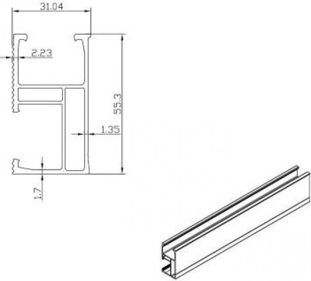 Hliníková lišta sloužící pro uchycení solárního panelu. Na boční straně je