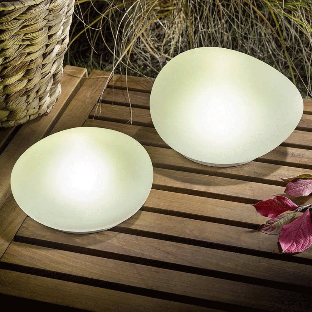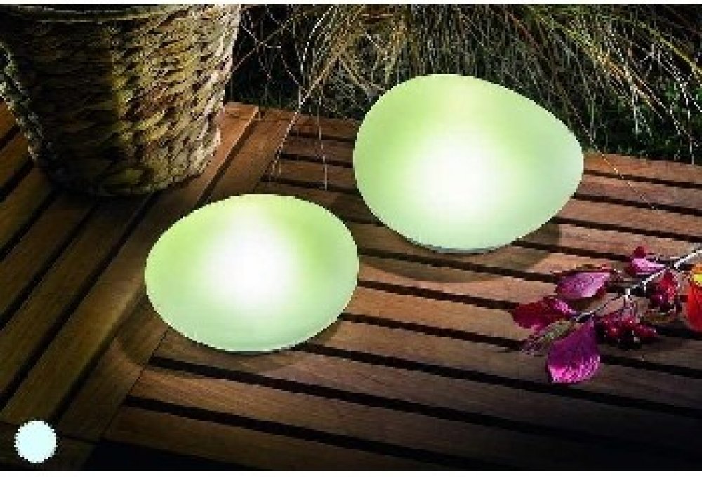 Dekorace do zahrady nebo na balkon. Masivní, saténové sklo a neobvyklý design. Přes den dekorace a v noci příjemné osvětlení. Uvnitř kamene se nachází krystalický solární modul, který nabije baterii během slunečního svitu. Po setmění se kameny automaticky rozsvítí.