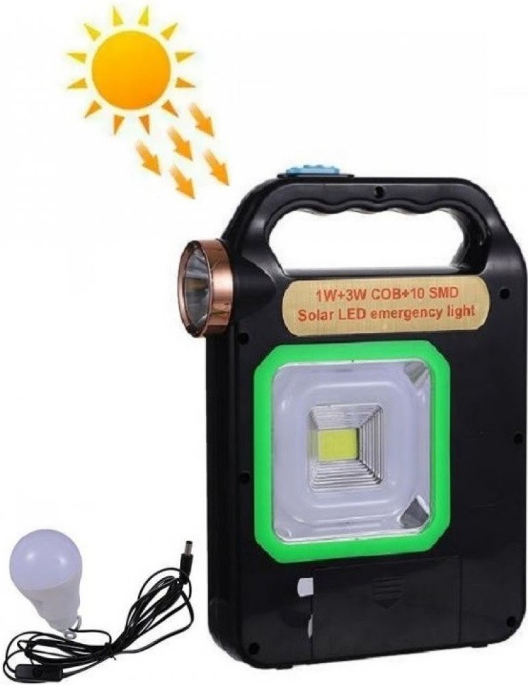 Solární světelný systém s 2 + 1 samostatnými LED světelnými zdroji je určen jako funkční dekorace k osvětlení zahrad, pergol, pro kempink i jako přenosná svítilna a nabíječka. Napájení je ze solárního panelu nebo lze světlo nabít pomocí běžné USB nabíječky mobilních telefonů z elektrické sítě. Energie se ukládá do dvou vyměnných baterií. Do centrálního světla lze zapojit přídavné světlo (žárovku) připojenou pomocí cca 3 metry dlouhého kabelu s vypínačem. Světelný systém lze použít též jako powerbanku a pomocí přiloženého USB kabelu lze nabíjet mobilní telefony a podobná zařízení.