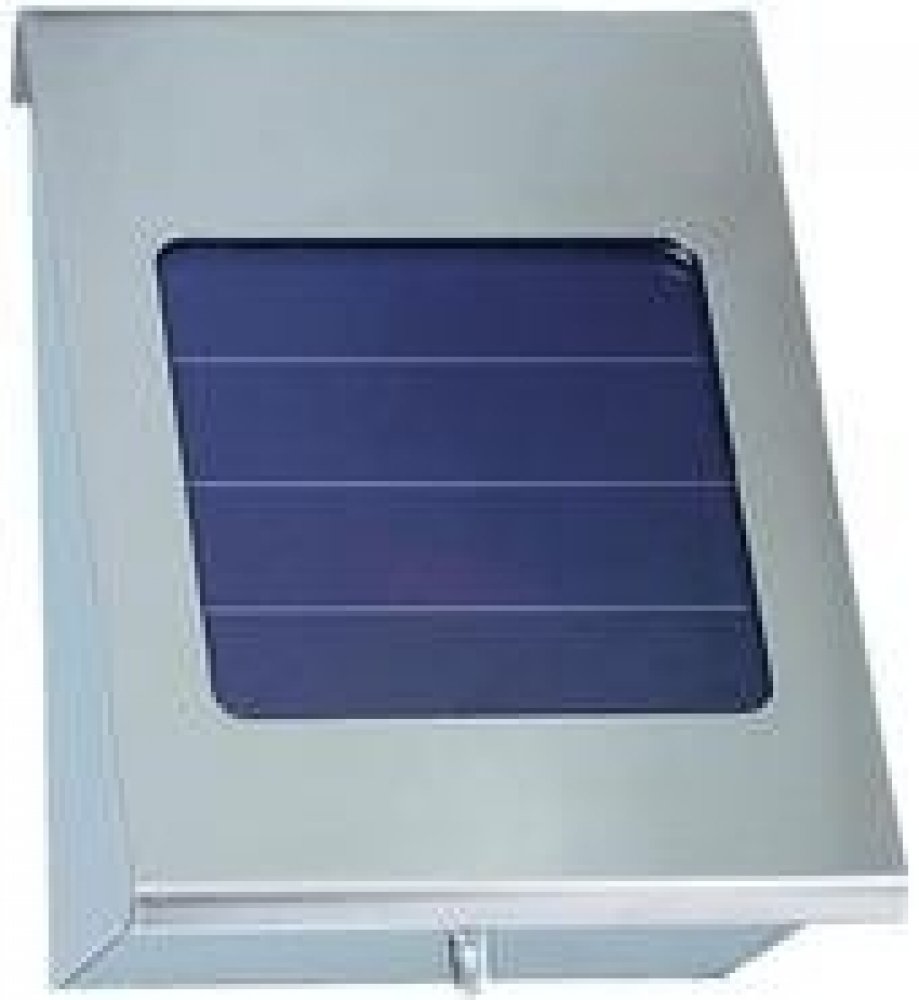 Zapne se automaticky za soumraku a vypne při svítání. Pevné pouzdro je tvořeno z nerezové oceli s vestavěným solárním panelem, který dobíjí baterii.