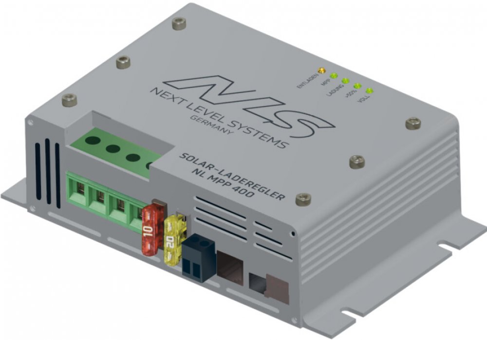 Solární regulátor s nejmodernější technologií nabíjení 12 V MPP, speciálně vyvinutý pro rekreační vozidla. Nabíjecí křivka nastavitelná v závislosti na typu baterie (gelová, AGM 1 + 2, kapalná, 4 x LiFePO4). Optimální monitorování nabíjení pomocí detekce teploty baterie. K dispozici je další nabíjecí výstup pro startovací baterii. Součástí balení jsou konektory (EBL) pro vozidla Hymer Group a teplotní senzor. Výkon: 400 Wp. Technické specifikace Údaje o elektrickém připojení Připojovací napětí: 12 V Údaje o produktu (bez obalu) Délka: 16,7 cm Šířka/hloubka: 10 cm Výška: 4,7 cm Hmotnost: 0,4 kg