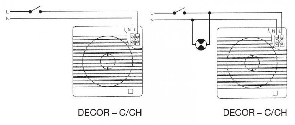 Svorkovnice ventilátoru je přístupná po sejmutí čelní mřížky. Připojení ventilátoru je kabelem pod omítkou.