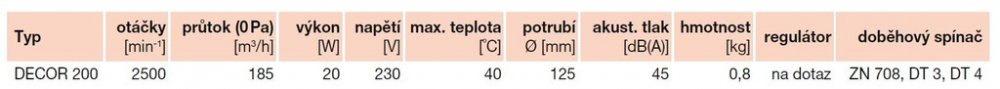 Motor ventilátoru je asynchronní s kotvou nakrátko a stíněným pólem. Malý axiální ventilátor je vybaven ochranou motor proti přetížení. Maximální provozní teplota okolí je 40°C. Stupeň krytí je IPX4
