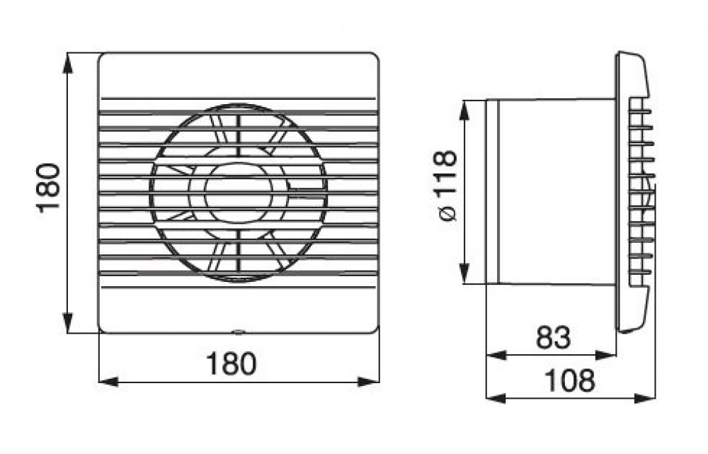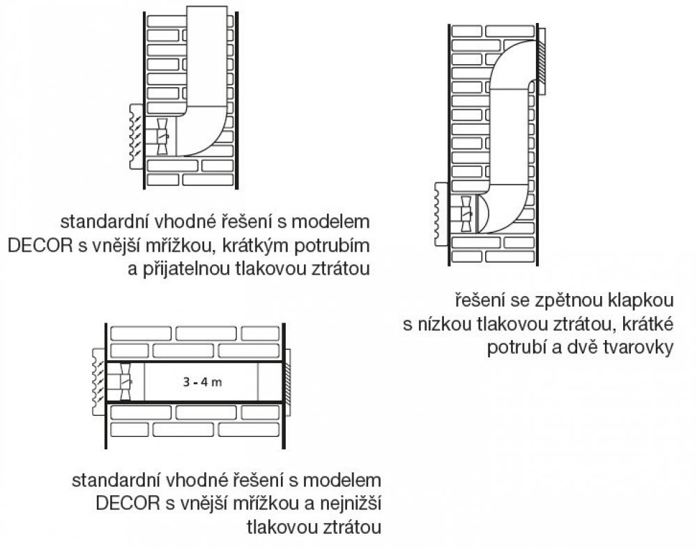 Skříň ventilátoru je vyrobena z nárazuvzdorného plastu. Montáž skříně ventilátoru je určena na zeď / stěnu nebo strop.