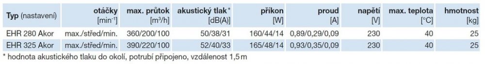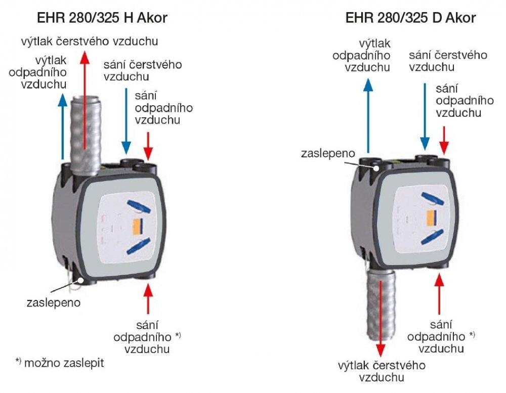 • EHR 280/325 H Akor RF - horní výtlak čerstvého vzduchu • EHR 280/325 D Akor RF - spodní výtlak čerstvého vzduchu Levé nebo pravé provedení se ze všech variant získá záměnou předního a zadního panelu.