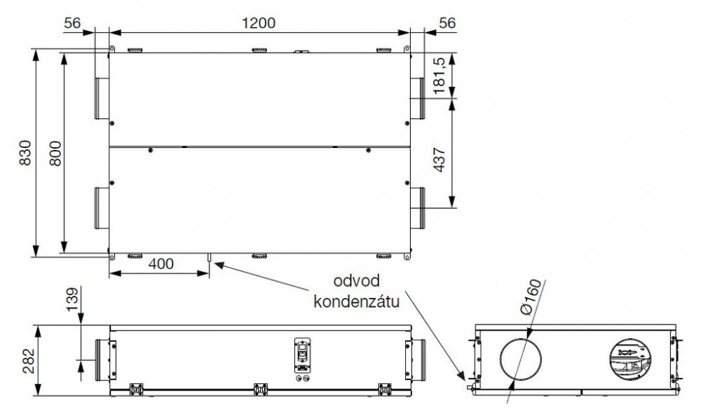 Bytová rekuperace s protiproudým výměníkem - ⌀ 160 mm (průměr), průtok 600 m3/h, protiproudý výměník, s dohřevem, účinnost 83%, stupeň filtrace F7;M5, voděodolnost o krytí IP 54, skříň z materiálu ALUZINC, izolace z polyuretanové pěny, automatický obtok výměníku, typ elektroniky EVO-PH, kompaktní rozměry, Plug & Play, EC motor, akustický tlak ~63,5 db(A), SVT kód - SVT34619, rozměry 1200 × 830 mm ...