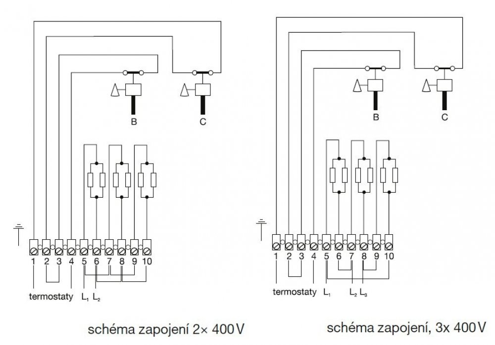 je vybaven dvěma termostaty, jeden je pracovní (60 °C), druhý bezpečnostní (bezpečnostní vypíná při 120 °C)