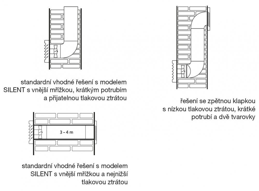 Ventilátory jsou vhodné pro krátké vzduchovody s nízkou tlakovou ztrátou nebo k odvětrání přímo přes stěnu. Variantu R je možné spouštět tlačítkem.