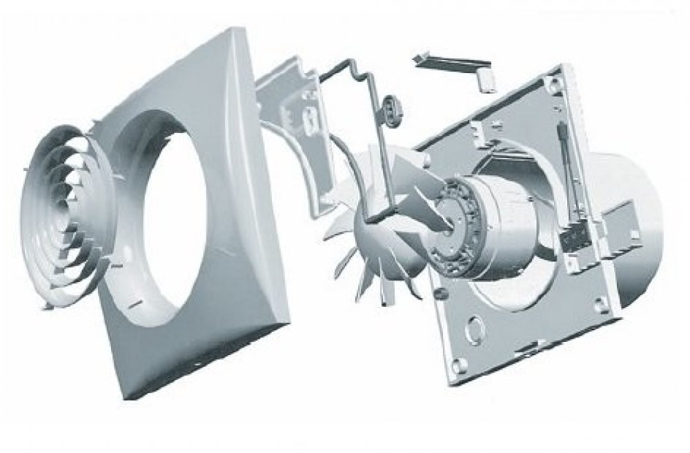 je z nárazuvzdorného plastu, bílá barva. Skříň je určena k montáži na stěnu. Ventilátory obsahují zpětnou klapku, jejíž řešení je patentováno.