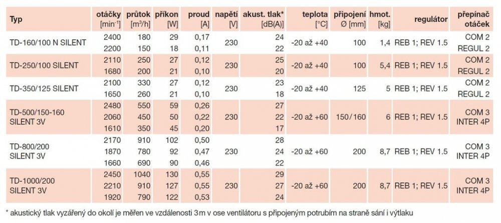 Skříň je z plastu, skládá se z konzole pro montáž na zeď nebo strop, hlukového absorbéru a motoru. Snadná demontáž motorové části, připevněné pomocí rychloupínacích spon. Připojovací hrdla s gumovým těsněním. Svorkovnice je na skříni ventilátoru, je otočná o 360° pro připojení kabelu z libovolného směru. U motorů s trojími otáčkami (TD 500–1000 SILENT 3V) se regulace provádí pomocí COM 3 nebo INT ...