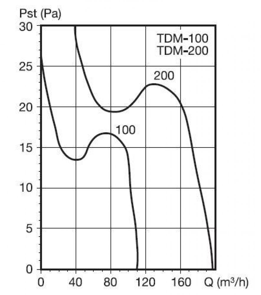 Hluk emitovaný ventilátorem je měřen ve vzdálenosti 1,5 m v ose ventilátoru na straně sání.