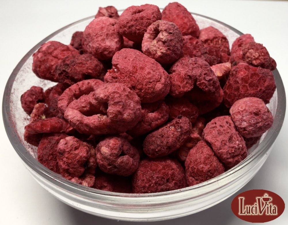 Maliny celé mrazem sušené díky procesu lyofilizace jsou dokonale křupavé, zachovávají si lehce sladkokyselou chuť a krásně voní. Vhodné jsou jako zdravý snack ve formě ovocných chipsů.