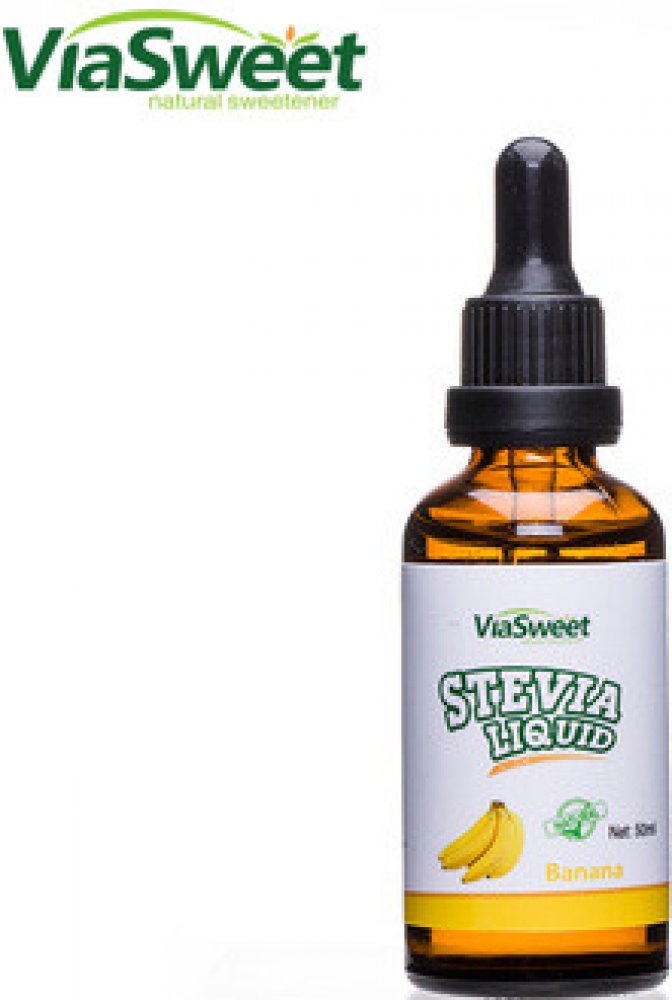 Sladidlo z rostliny Stevia Rebaudiana Bertoni. Nekalorické sladidlo ochucené přírodním extraktem (cca 3 kapky by měly mít sladivost 1 kostky cukru.)Vhodné pro diabetiky a ke zdravému slazení. Může chránit před zubním kazem. Příchuť: banán