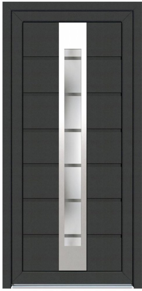 Domovní dveře plastové Style jsou vstupní dveře spojující inovaci, estetiku, pohodlí a bezpečnost vašeho domu s moderním designem. Tento model zateplených vstupních dveří má průhled z izolačního dvojskla vsazený z venkovní strany do rámečku z ušlechtilé oceli. Atraktivní vzhled v stabilním, po obvodu i v rozích zpevněném rámu, je doplněn odolným hliníkovým prahem Treshold a třemi 3D panty pro snadné seřízení dveří. Dveře i rám jsou opařeny TPV těsněním a hodnota prostupu tepla dveřmi činí 1,6 W/m2K. Dveře jsou vhodné pro použití v bytových a nebytových stavbách bez požadavků na požární ochranu a/nebo kouřotěsnost. Dveře jsou dodávány bez vložky a kování. Dveře jsou z vnější strany antracitové a vnitřní bílé. Uvedené rozměry jsou včetně zárubně.