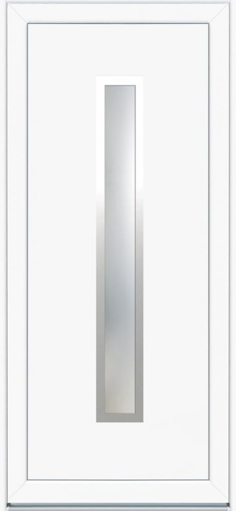Domovní dveře plastové Hanna In jsou vstupní dveře spojující inovaci, estetiku, pohodlí a bezpečnost vašeho domu s moderním designem. Tento model zateplených dveří má průhled z izolačního dvojskla vsazený z venkovní strany do rámečku z ušlechtilé oceli. Moderní vzhled v stabilním, po obvodu i v rozích zpevněném rámu je doplněn odolným hliníkovým prahem Treshold a třemi 3D panty pro snadné seřízení dveří. Hodnota prostupu tepla dveřmi je 1,6 W/m2K. Dveře jsou vhodné pro použití v bytových a nebytových stavbách bez požadavků na požární ochranu a/nebo kouřotěsnost. Dveře jsou dodávány bez vložky a kování. Uvedené rozměry jsou včetně zárubně.