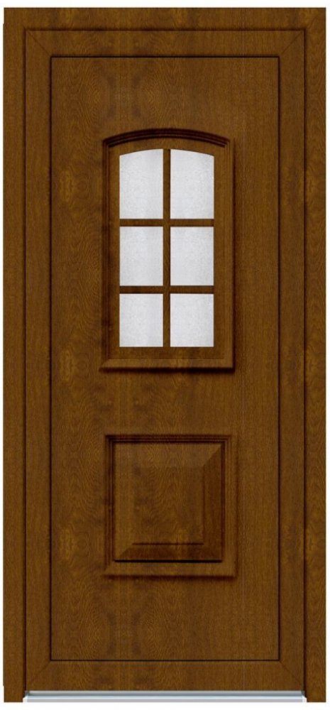 Domovní dveře plastové Maria jsou vstupní dveře spojující inovaci, pohodlí a bezpečnost vašeho domu s tradičním designem. Tento model zateplených vstupních dveří má průhled z izolačního dvojskla doplněný mřížkou, který přináší do zádveří denní světlo bez větších tepelných ztrát. Klasický vzhled dveří je tvořen stabilním rámem, je doplněn odolným termoizolačním hliníkovým prahem Treshold a třemi 3D panty pro snadné seřízení a funkčnost dveří. Dveře i rám jsou opařeny TPV těsněním a hodnota prostupu tepla dveřmi činí 1,5 W/m2K. Dveře jsou vhodné pro použití v bytových a nebytových stavbách bez požadavků na požární ochranu a/nebo kouřotěsnost. Dveře jsou dodávány bez vložky a kování. Uvedené rozměry jsou včetně zárubně.