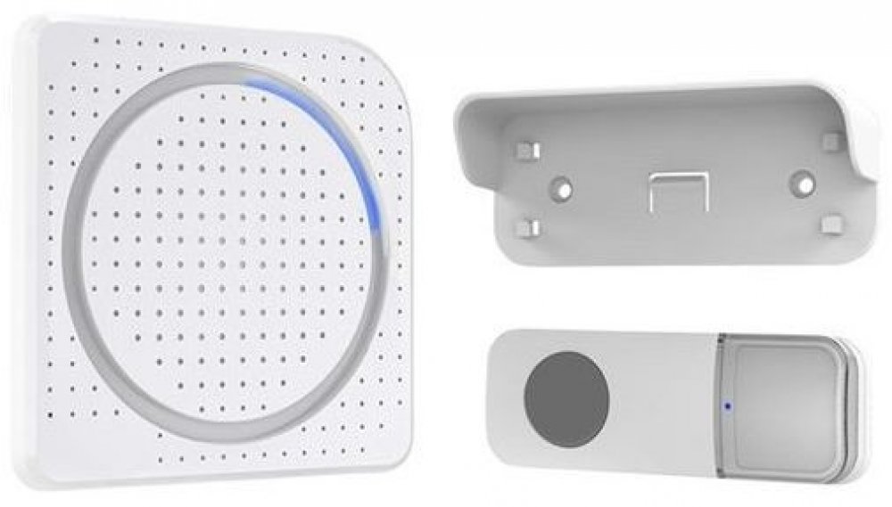 Bílé provedení s čistými liniemi působí nenápadně a elegantně zároveň. Zvonek decentně ladí s většinou interiérů a neruší celkový vzhled místnosti. Kombinuje moderní design s praktickým využitím v každodenním provozu.