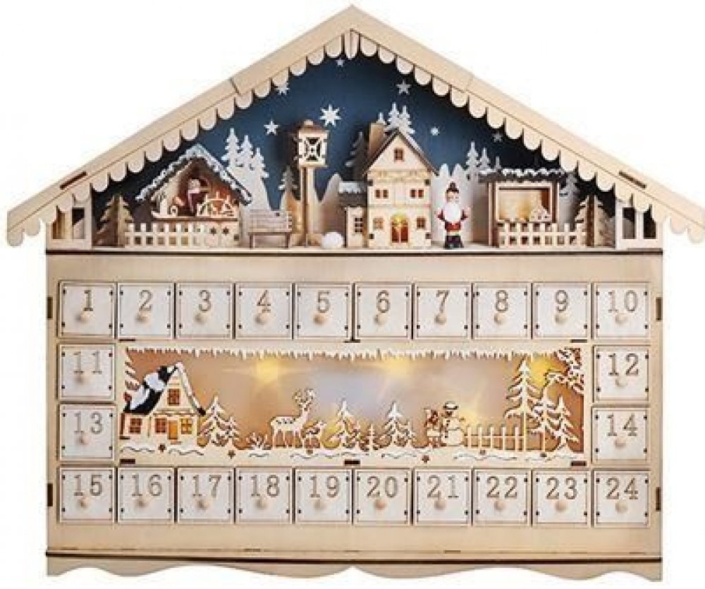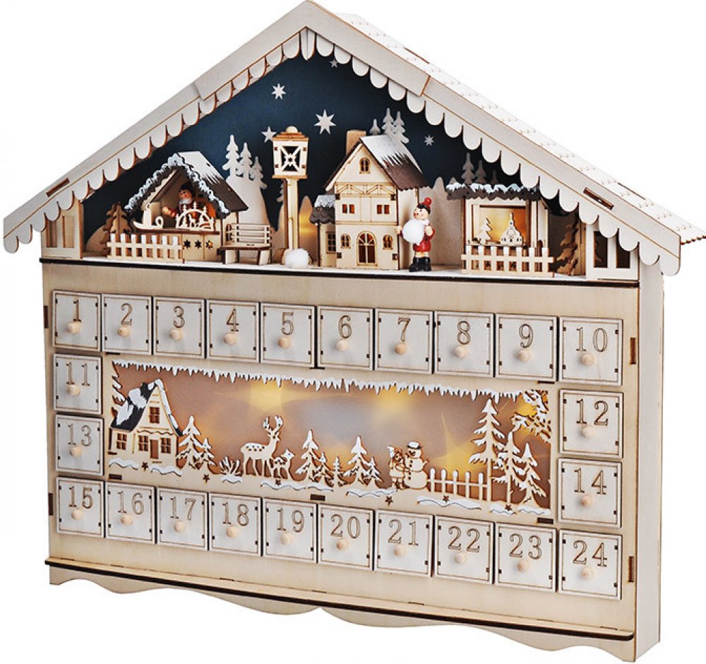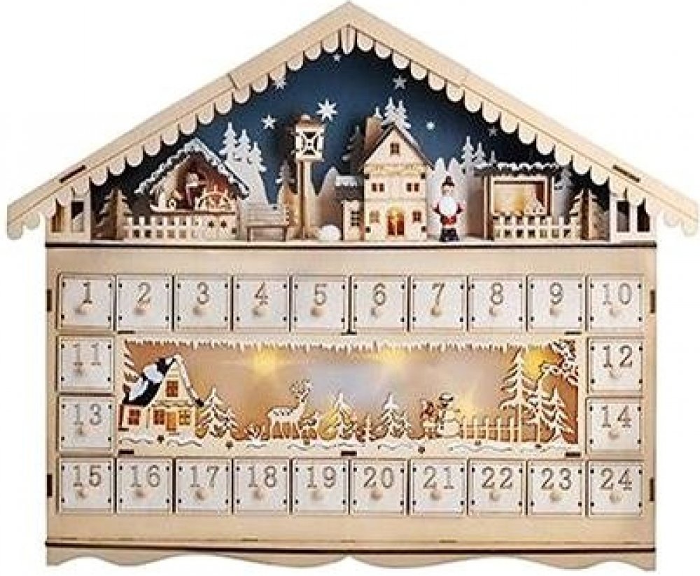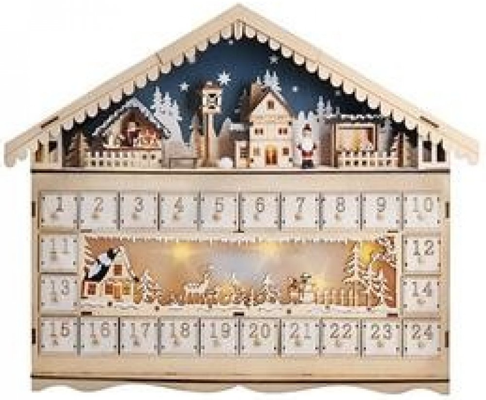 Solight 1V258 LED vánoční dekorace adventní kalnedář horská chata