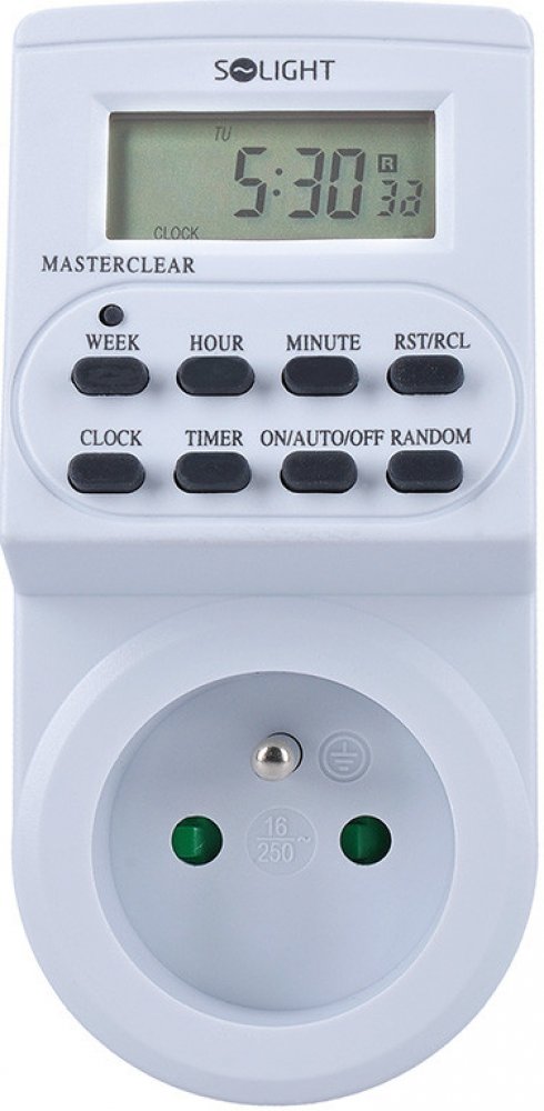 Spínací hodiny do zásuvky časové digitální 17 režimů. Plně programovatelné spínací hodiny s týdenním i denním cyklem spínání. Tyto spínací hodiny mohou i ve Vaší nepřítomnosti opakovaně spínat a vypínat například topení, lampu nebo rádio.