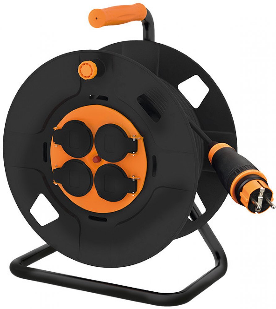 Buben umožňuje připojení až čtyř elektrických zařízení. Díky vodiči o průřezu 2,5 mm2 zvládne trvalé zatížení až 3680 W (16 A / 230 V~). Délka kabelu 25 m poskytuje maximální flexibilitu při práci v interiéru i exteriéru. Samovolnému navíjení brání integrovaná aretační brzda.