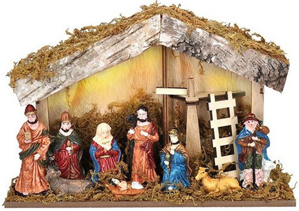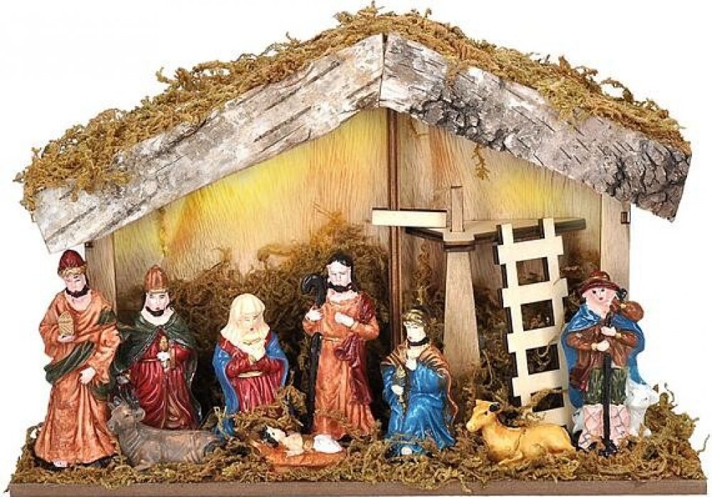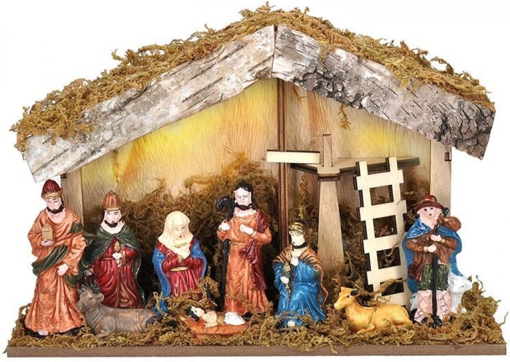 Krásný dřevěný betlém s detailně vyvedenými barevnými postavičkami má podsvícení na baterie. Výhodou je časovač, který tak šetří spotřebu baterií.