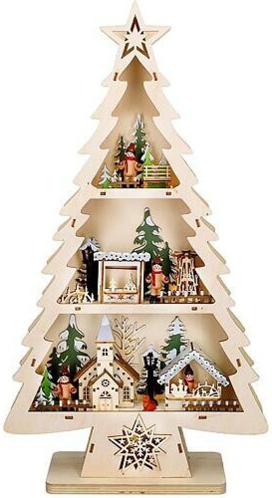 Dřevěný váčnoční stromekek s dekoracemi a LED osvětlením