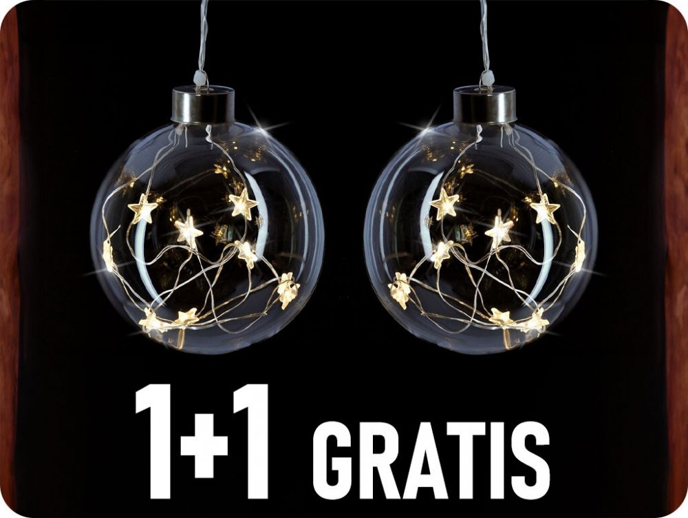 Elegantní skleněná vánoční koule s LED řetízkem uvnitř vyniká svým čistým, dekorativním vzhledem a jemným teple bílým světlem. Uvnitř koule o průměru 10 cm se nachází 10 LED diod, které vytvářejí efekt malého světelného vesmíru. Koule je zavěšená na 50cm přívodním kabelu, takže se hodí pro zavěšení do okna, na strop nebo dekorativní větve. Napájení zajišťují 2x AA baterie (nejsou součástí), s výdr...