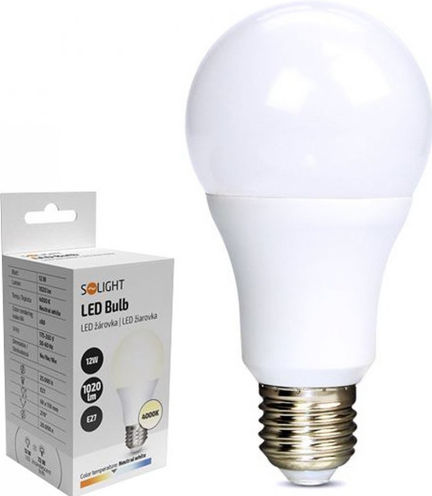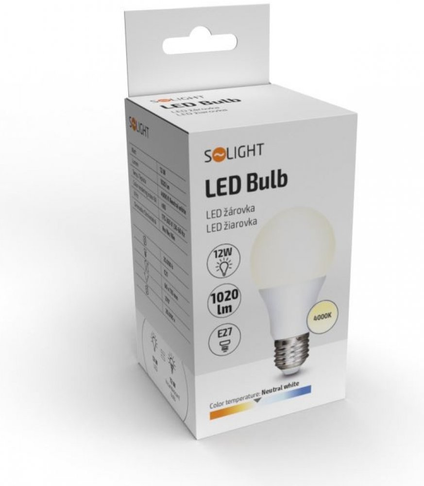 neutrální barva 4000 K F klasická Solight LED žárovky 25000 h 1010 lm E27 12 W 230 V