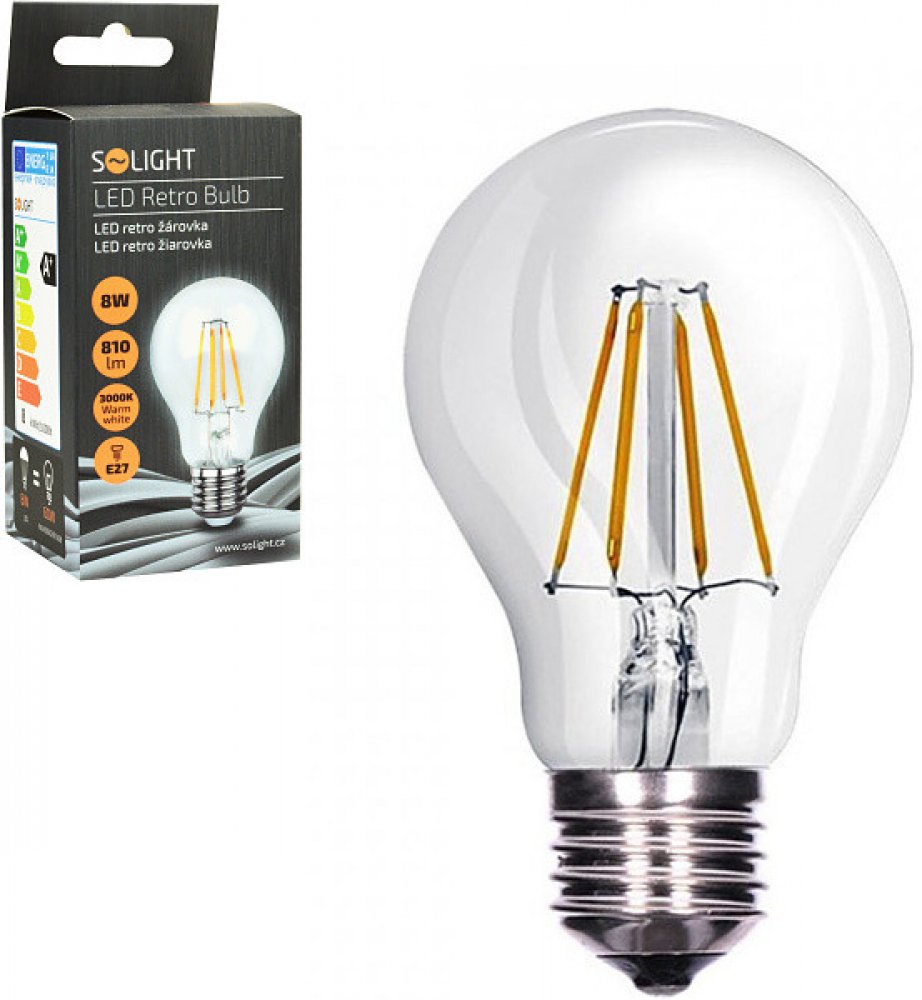 Solight LED žárovka WZ501 retro klasický tvar 8W E27 3000K 360° 750lm