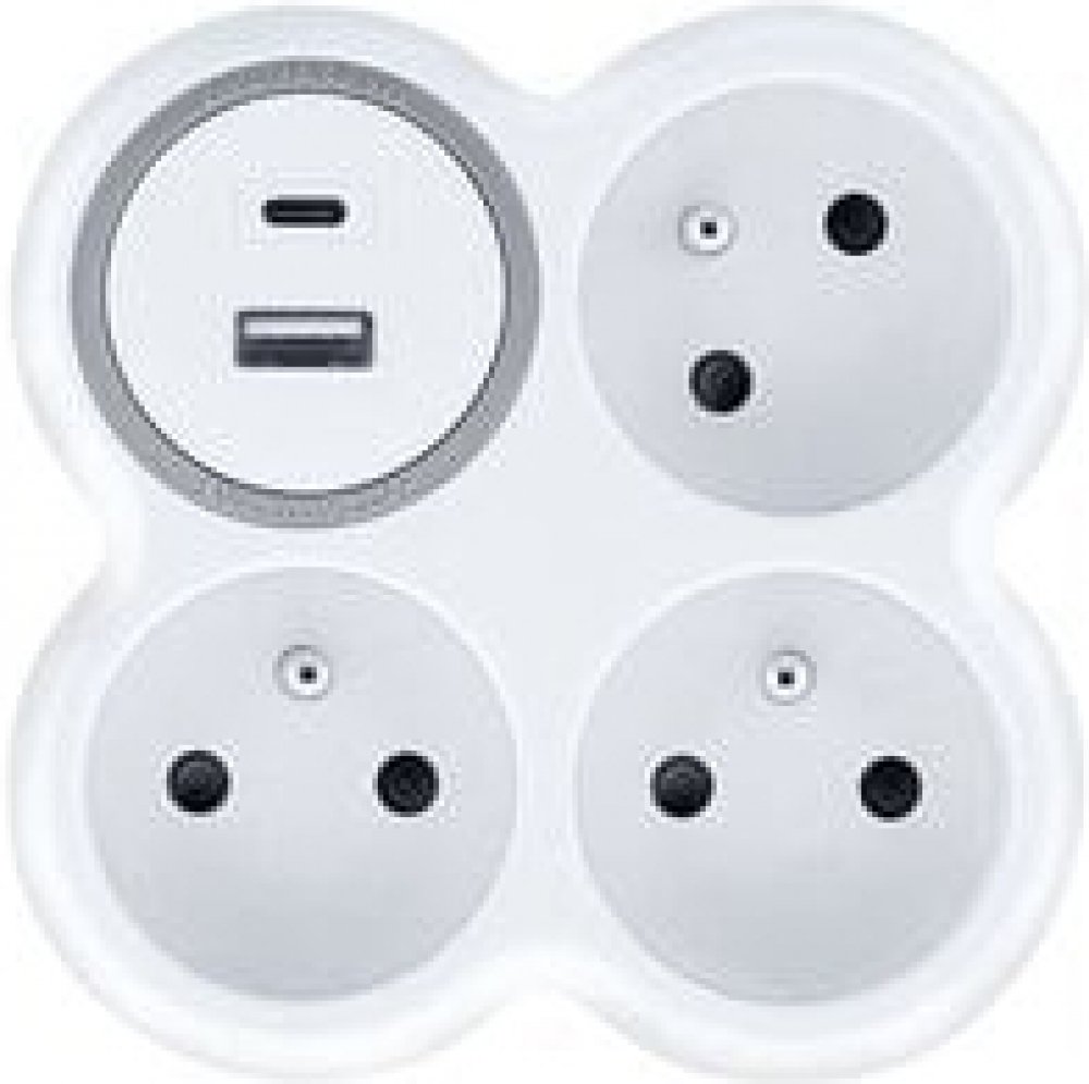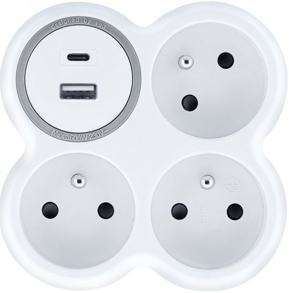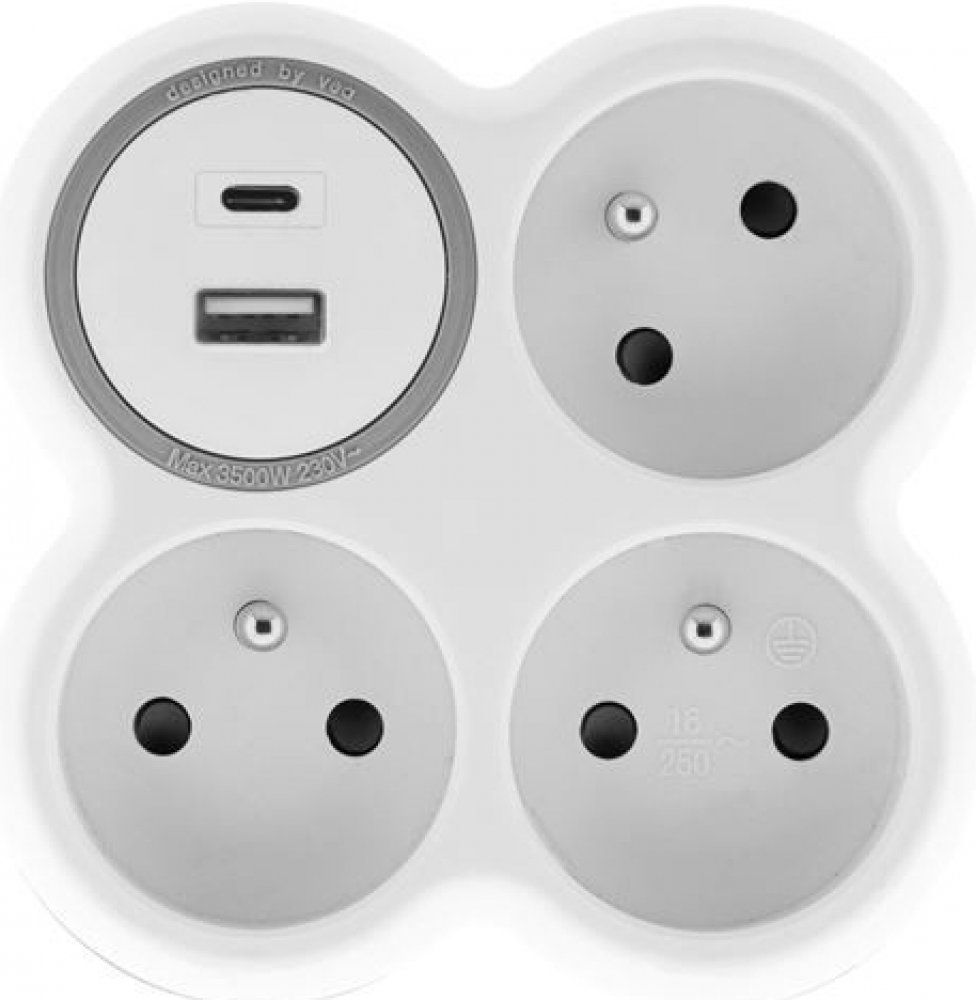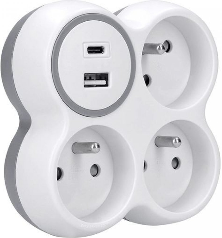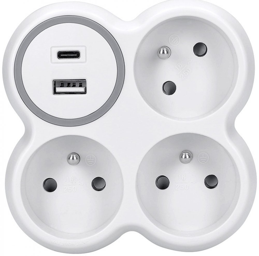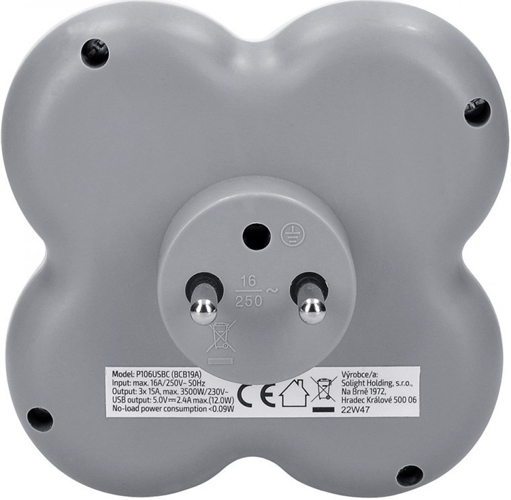 Zásuvka rozbočovací Solight P106USBC, 3x 10A, bílá-šedá, vypínač