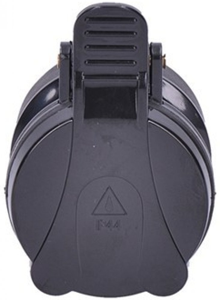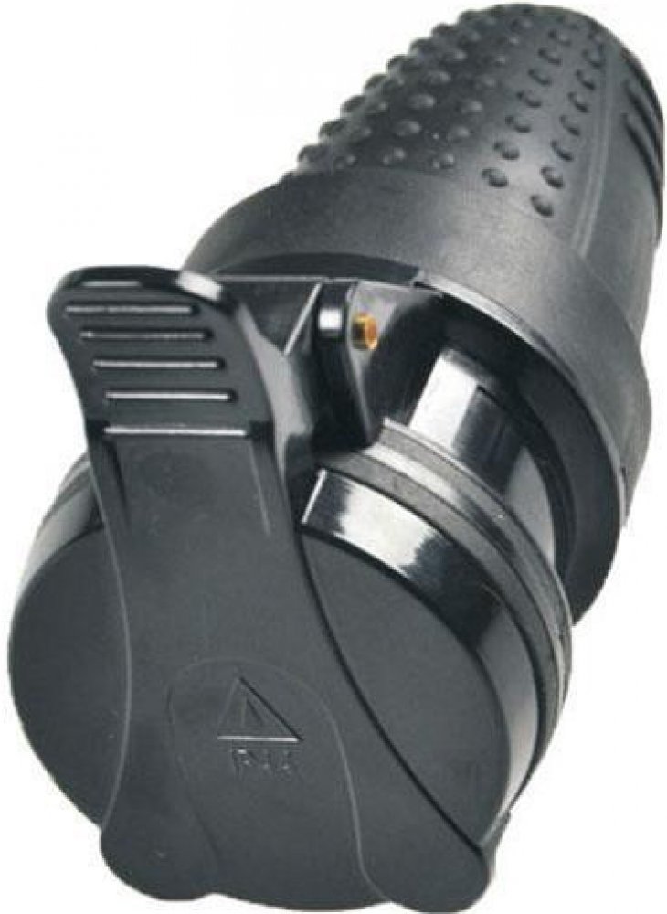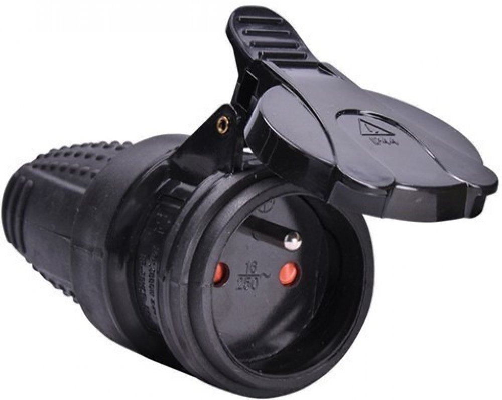 Zásuvka gumová spojovací 230V 16A vodotěsná IP44 přímá P77 černá Solight. Zásuvky spojovací na 230-250V gumové s termoplastického kaučuku s víčkem a vodotěsným krytím IP44. Slouží ke spojení prodlužovacích kabelů a instalují se zejména na gumové černé nebo plastové bílé ohebné a flexibilní kabely do jmenovitého proudu 16 A.