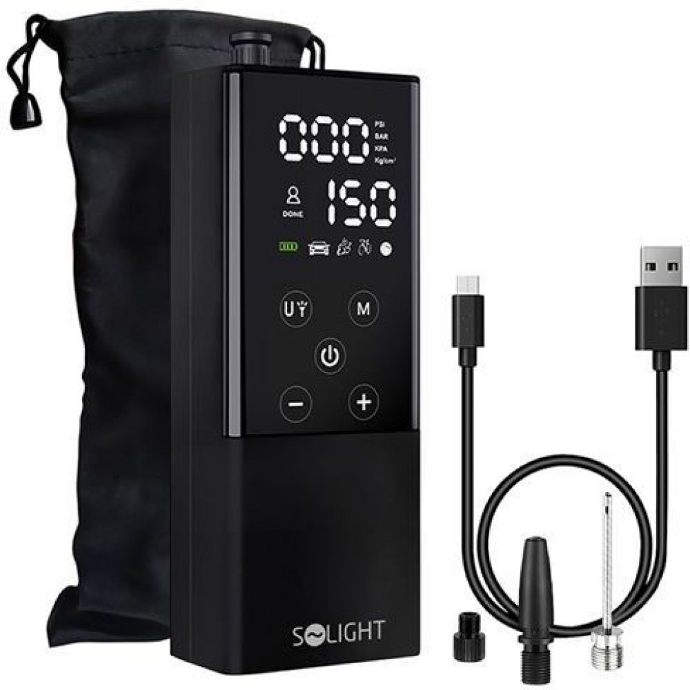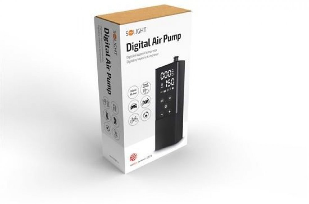 Digitální kompresor Solight vám umožní jednoduše a bez námahy nafouknout pneumatiky vašeho vozu, motorky, kola, koloběžky nebo nafouknout míč či jiné nafukovací výrobky.