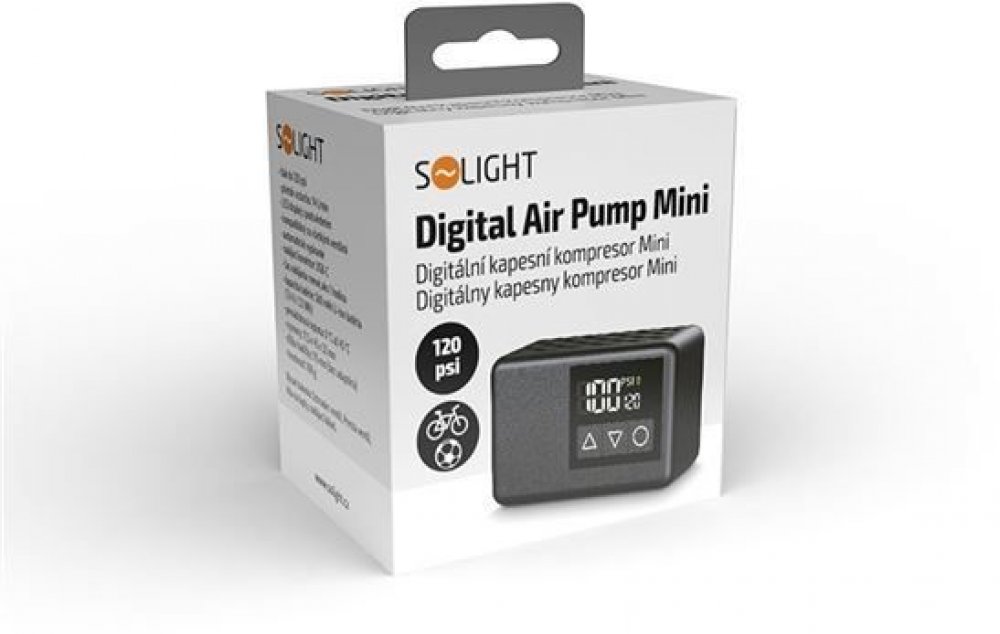 Malý a lehký digitální kompresor s LED displejem, automatickým vypnutím a USB-C nabíjením pro pohodlné nafukování kol i míčů. Digitální kapesní kompresor mini Solight je kompaktní a lehký přístroj, který nabízí překvapivě vysoký výkon. Díky svým rozměrům a hmotnosti je snadno přenosný a ideální na cesty, kde poslouží k rychlému nafouknutí pneumatik jízdních kol, míčů nebo různých nafukovacích výro...