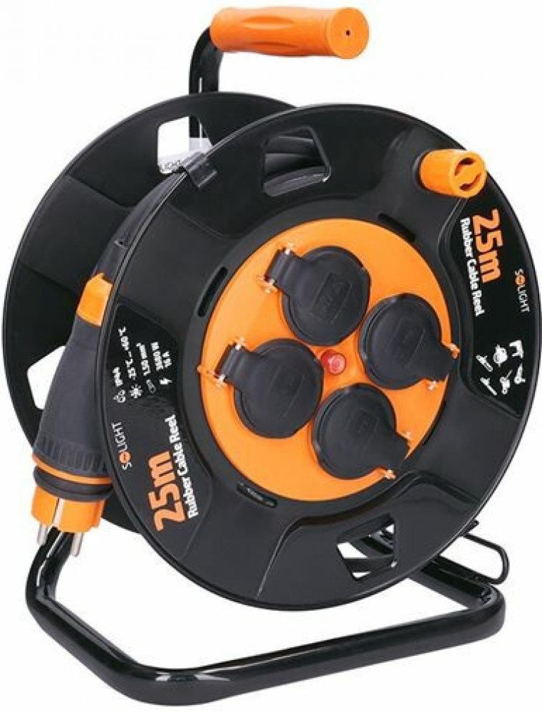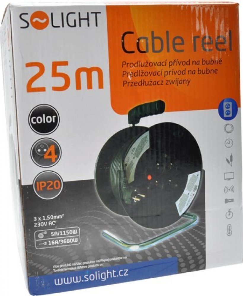 Prodlužovací kabel na bubnu 25m, 3x1,5mm, PVC, 4 zásuvky - Solight PB01