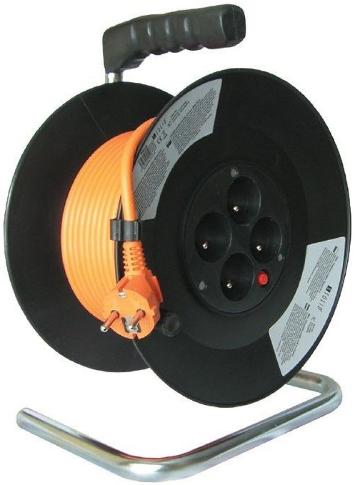 PVC kabel s vodiči o průřezu 3×1,5 mm2 je vhodný pro vnitřní a suché chráněné prostory. Buben je vybaven čtyřmi zásuvkami s dětskými pojistkami, navíc i tepelnou pojistkou, která přeruší napájení v případě přetížení nebo při použití bez úplného odvinutí kabelu. Barevné odlišení kabelu od okolního prostředí zvyšuje bezpečnost při práci.