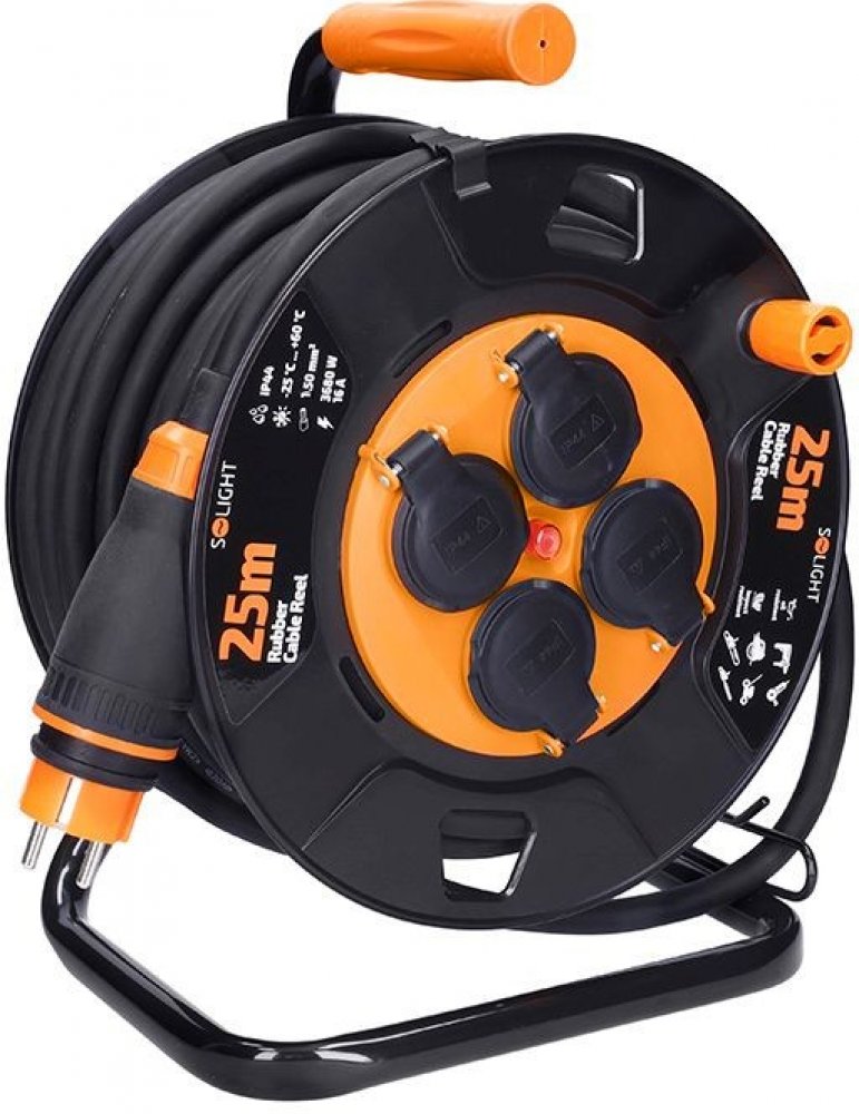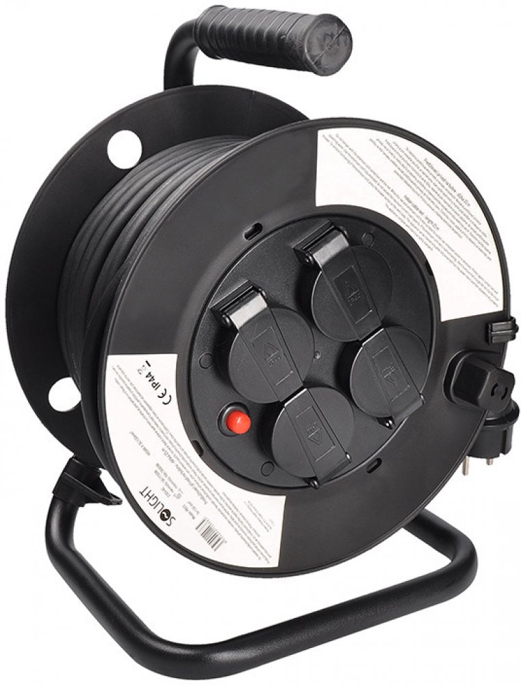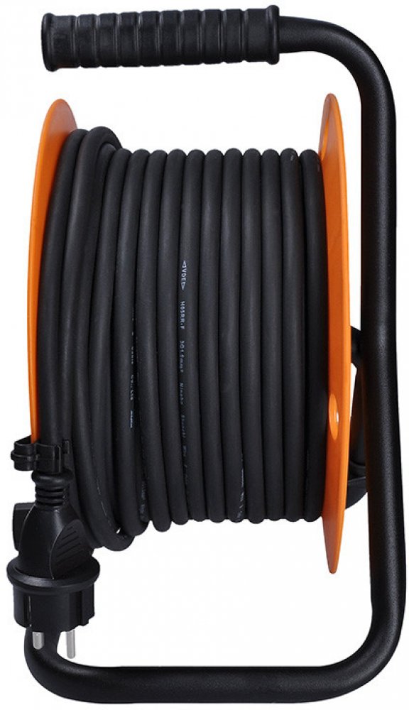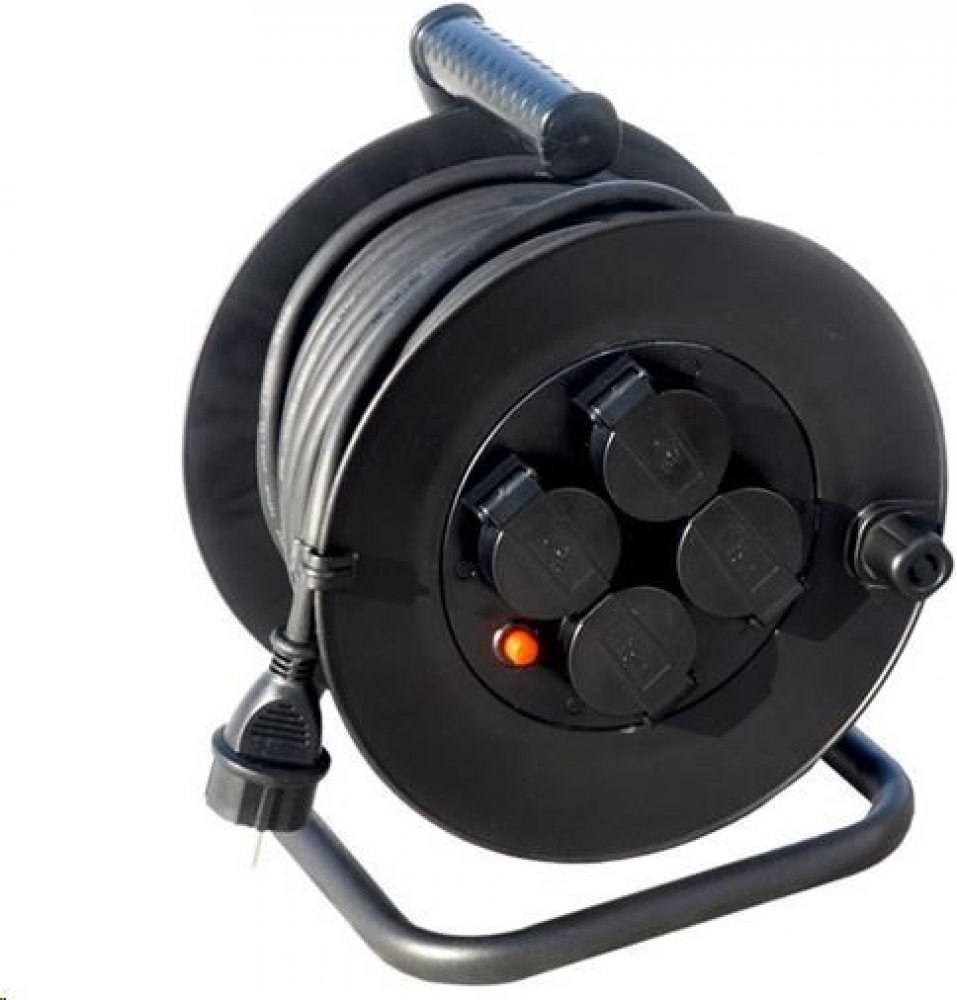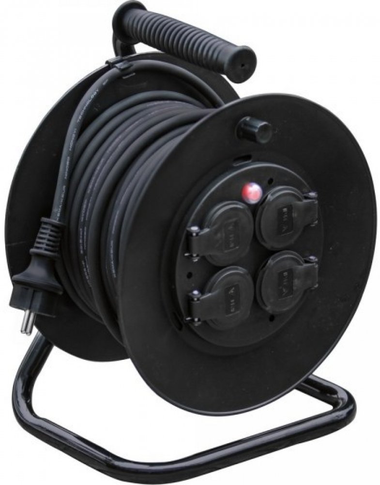 Gumový kabel typ H05RR-F 3G s vodiči o průřezu 3×1,5 mm2 je vhodný pro venkovní použití i vnitřní prostory. Buben je vybaven zásuvkami s dětskými pojistkami a tepelnou pojistkou, která zajišťuje bezpečnost při přetížení nebo neúplném odvinutí kabelu. Produkt splňuje stupeň krytí IP44, který zajišťuje ochranu proti stříkající vodě. Vhodný pro bezpečné a spolehlivé připojení stavebních, zahradních i méně náročných průmyslových zařízení.