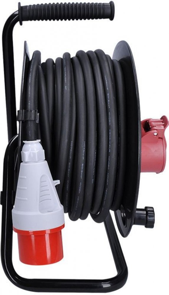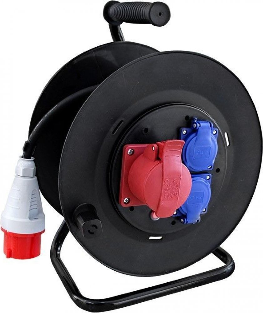 Robustní prodlužovací přívod na bubnu s délkou 25 metrů, jednou zásuvkou na 400 V a dvěma zásuvkami na 230 V je ideální volbou pro napájení stavebních strojů, profesionálního nářadí nebo dílenského vybavení. Díky kabelu z měkčené pryže a krytí IP44 je vhodný i do náročných podmínek na stavbách nebo v průmyslu. Samovolnému navíjení brání integrovaná aretační brzda.