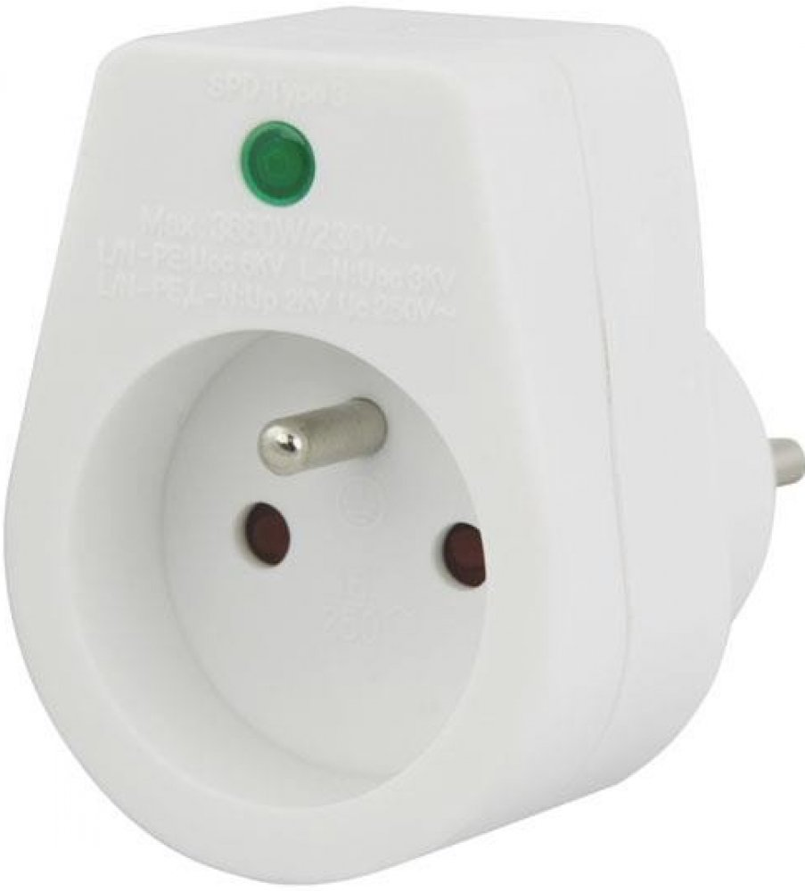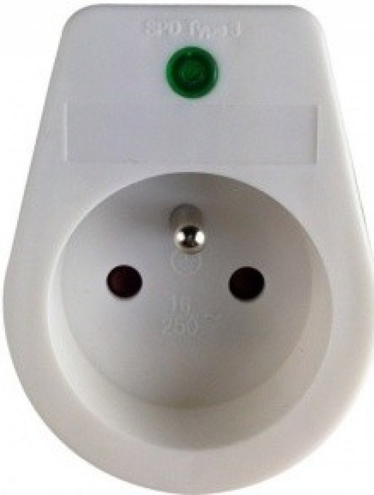 Jednozásuvková přepěťová ochrana Solight do zásuvky s LED indikací ochrany a dětskou ochranou.