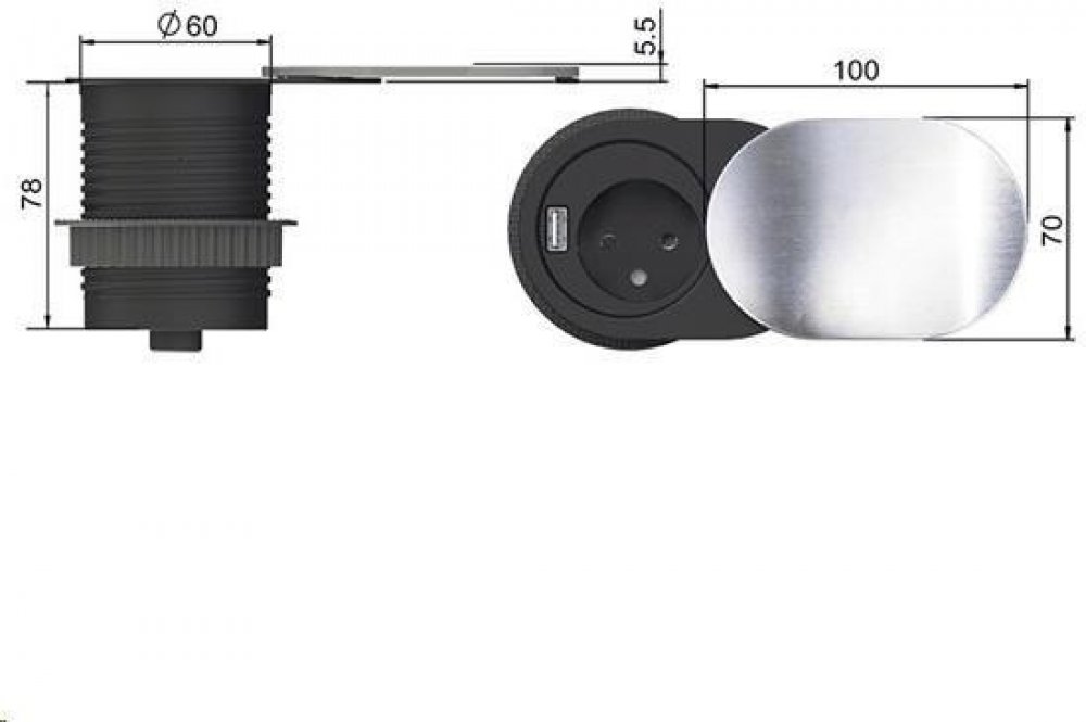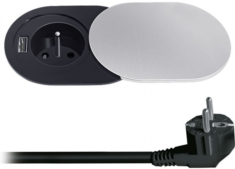 vestavná elektrická zásuvka pro pracovní desky a stoly s USB rychlonabíječkou