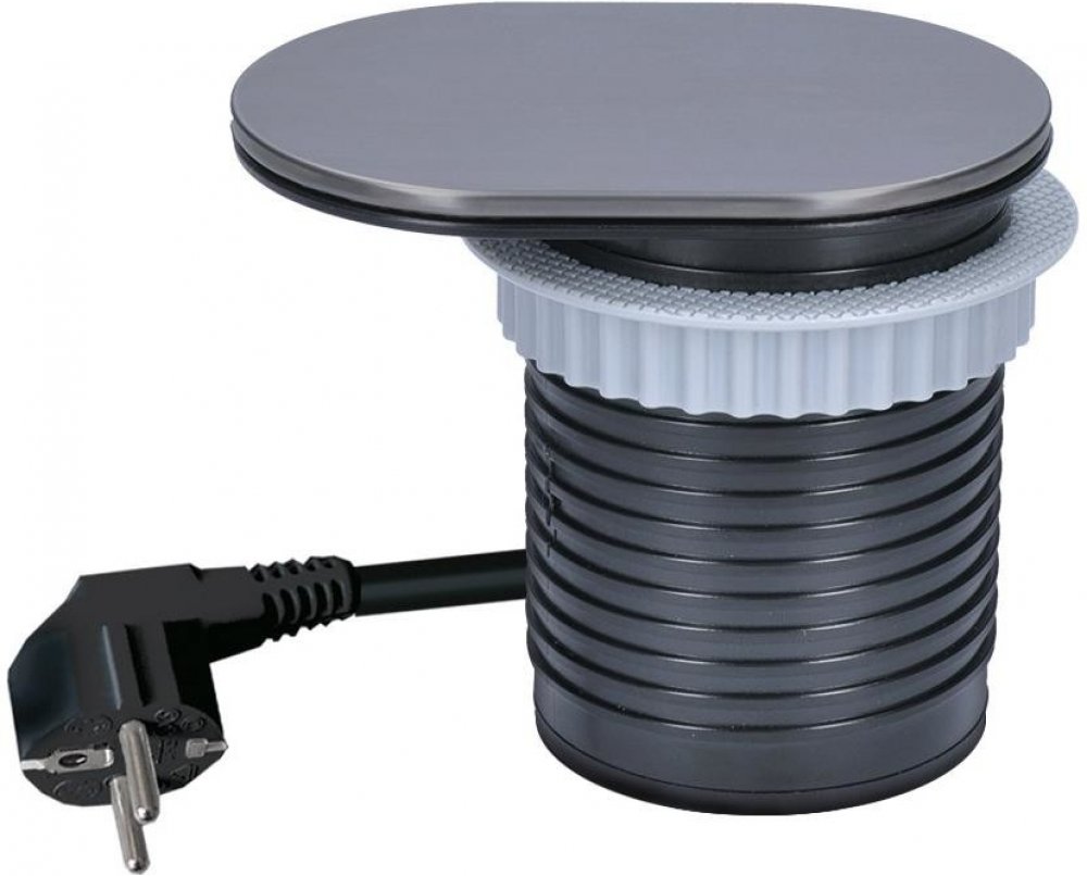 Posuvné víčko v matném nerez provedení působí elegantně a nenápadně. Posuvný mechanismus chrání zásuvku i nabíjecí porty před prachem a nečistotami. Navíc lze odhalit jen USB porty a síťovou zásuvku ponechat zakrytou. Zakryté víčko zachovává čistý vzhled pracovní plochy.