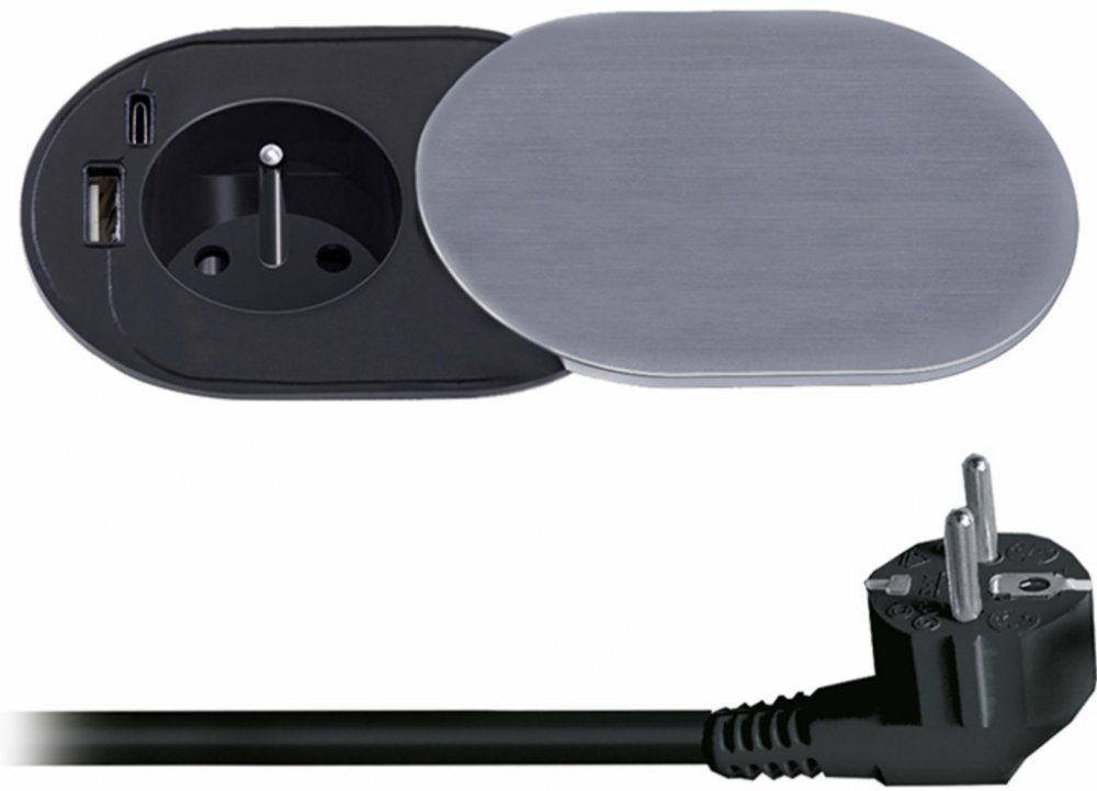 Tato vestavná zásuvka kombinuje klasickou síťovou zásuvku 230 V s moderním USB rychlonabíjením USB-C a USB-A. Díky tomu snadno nabijete telefon, tablet nebo jiná zařízení bez potřeby samostatných adaptérů. Ideální pro pracovní stoly, kuchyně i noční stolky.