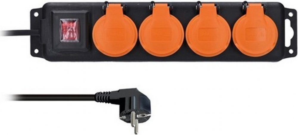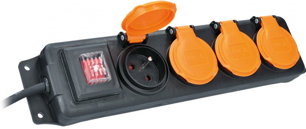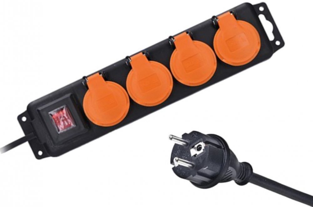 Prodlužovací přívod s gumovým kabelem, čtyřmi zásuvkami a praktickým vypínačem je ideální volbou pro práci na zahradě, stavbě nebo v dílně. Robustní konstrukce zajišťuje spolehlivý provoz a krytím IP44 zaručuje odolnost proti stříkající vodě ze všech směrů.