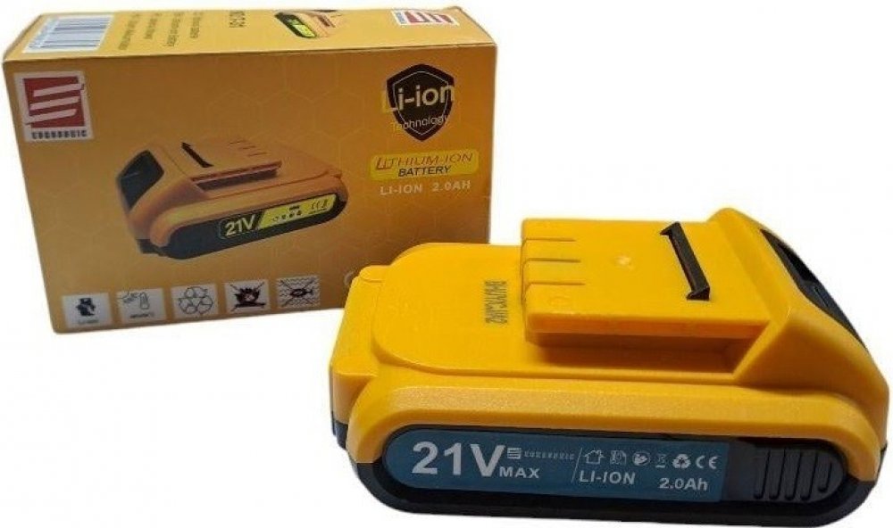 Tato Li-ion baterie s napětím 21V a kapacitou 2000 mAh je navržena pro dlouhotrvající a spolehlivý výkon při použití s vaším aku nářadím. Díky pokročilé lithium-iontové technologii poskytuje vysokou energetickou účinnost a delší životnost ve srovnání s tradičními bateriemi. Je lehká a má menší samovybíjení.
