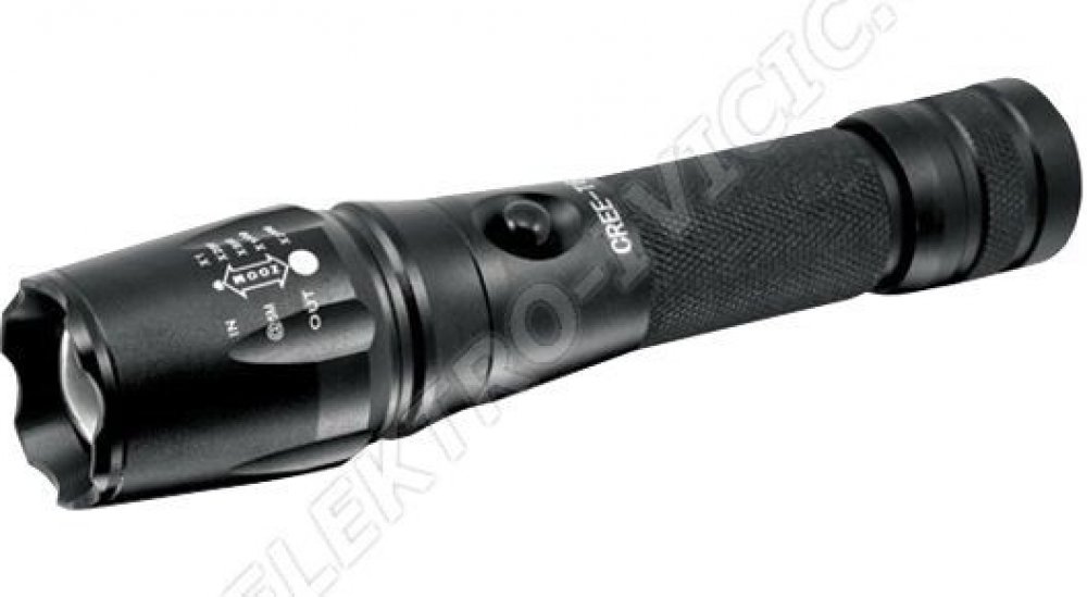 Profesionální nabíjecí svítilna s vysoce svítivým LED čipem. Svítilna je celá vyrobena z velmi odolné kovové slitiny a má tvrzené polykarbonátové sklo, což zabraňuje poškození. Funkce ZOOM umožňuje měnit velikost světelného kuželu.