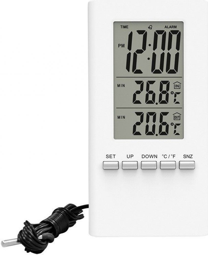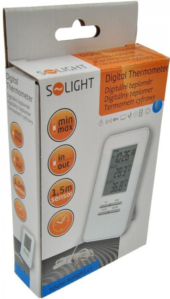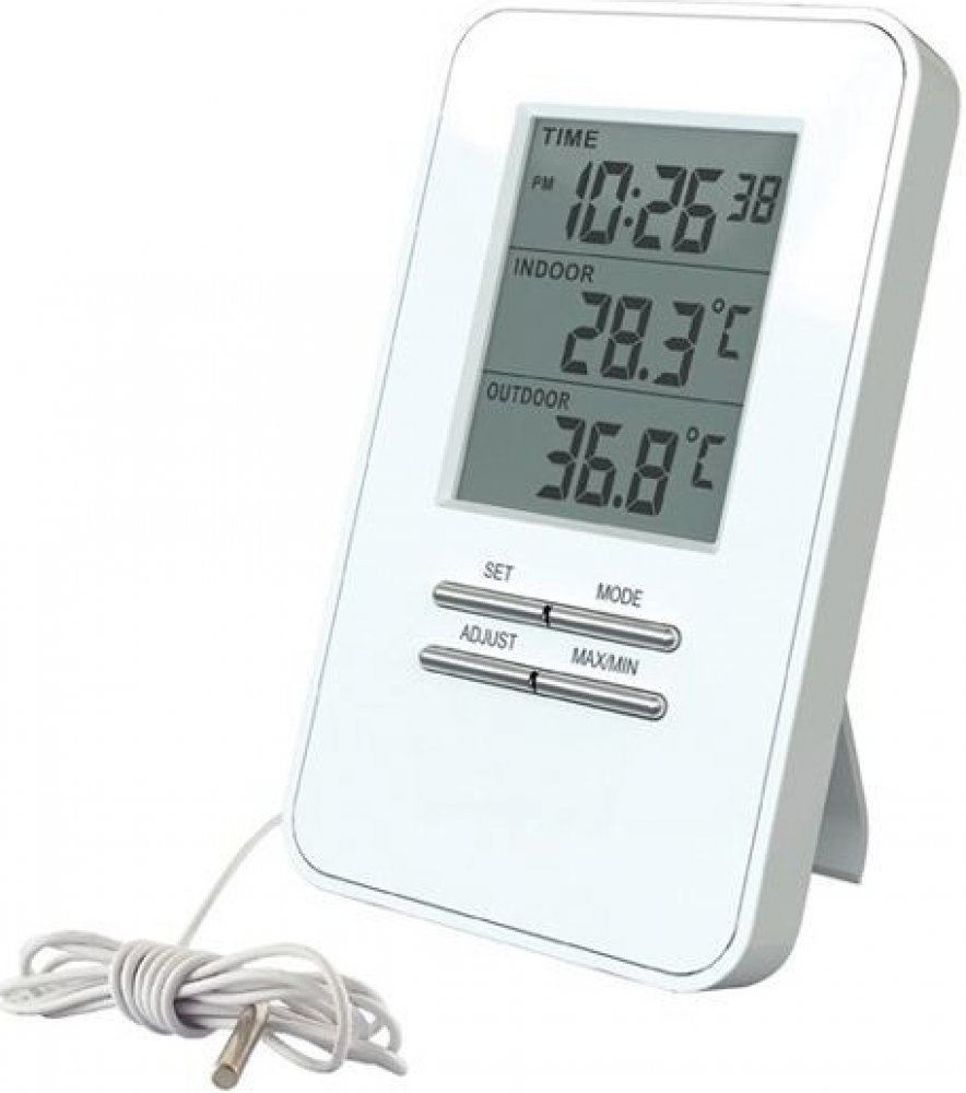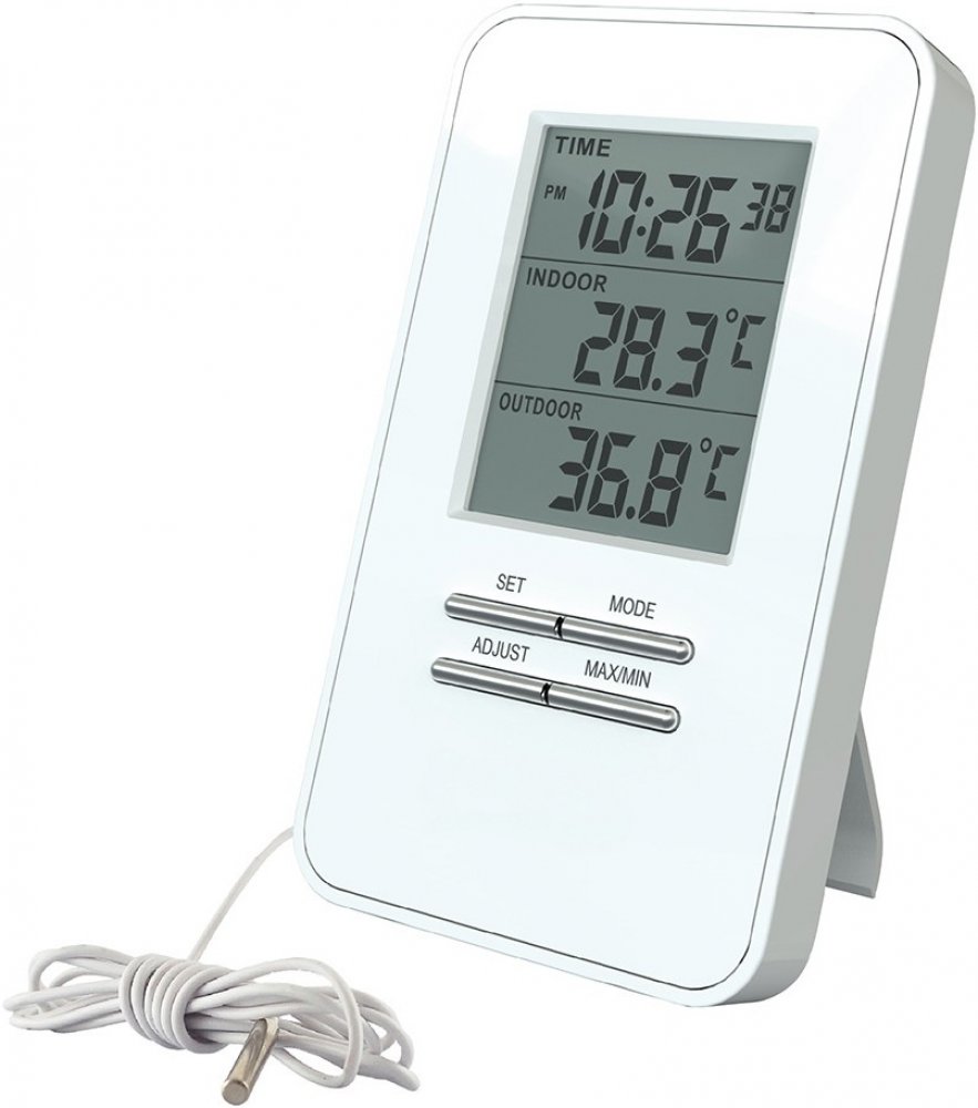 Za použití digitálního teploměru budete mít neustále aktuální přehled o teplotě uvnitř domácnosti, ale i venku. Digitální teploměr umí měřit aktuální teploty a také zaznamenávat minimální a maximální teploty do své paměti, má budík, ukazuje čas.