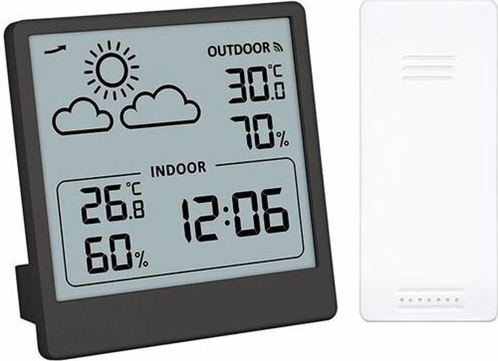 Měří vnitřní teplotu a venkovní teplotu. Měření vlhkosti pro vnitřní a vnější prostředí. Ukládání maximálních a minimálních hodnot teploty a vlhkosti, zobrazení trendu změny tlaku a předpovědi počasí. Možnost výběru jednotek teploty. Napájení: hlavní jednotka a snímač 2× AAA baterie (nejsou součástí balení). barva: černá.