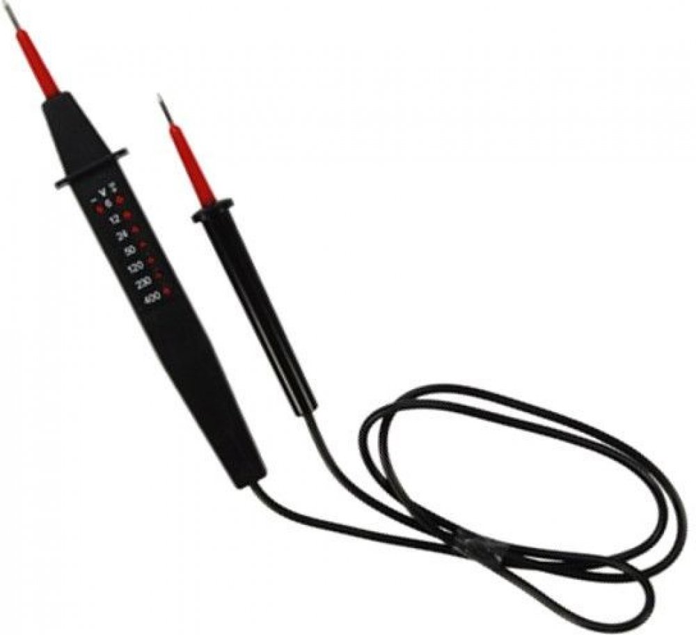 Velice praktická a kvalitní zkoušečka kompaktních rozměrů je vhodná nejen pro domácí, ale i profesionální použití. Jednoduše změříte potřebné hodnoty a to v rozmezí 6–400 V střídavého i stejnosměrného napětí. Naměřené hodnoty signalizují LED diody. Zkoušečka je napájena přímo z měřeného zdroje, díky tomu nepotřebujete žádné baterie.
