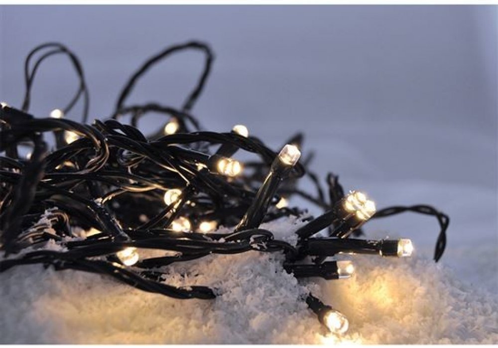 Dekorativní LED osvětlení s 500 diodami v teplé bílé barvě je ideální pro venkovní i vnitřní prostory. Nabízí 8 světelných módů, jako je blikání, prolínání a stmívání, s paměťovou funkcí, která si po zapnutí pamatuje poslední nastavení. Časovač umožňuje automatické vypnutí po 6 hodinách a následné zapnutí po 18 hodinách. Světelné diody jsou rozmístěny v rozestupech 10 cm na osvětleném kabelu dlouhém 50 m, přívodní kabel měří 5 m a je v zelené barvě. Příkon činí 6 W, napájení 230V AC / 31V DC. Osvětlení je odolné vůči prachu a vodě (IP44) a pracuje při teplotách od -20 °C do +50 °C.