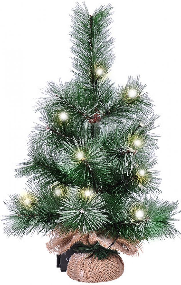 Dekorativní vánoční stromek vysoký 45 cm je osazen 15 LED diodami v teplé bílé barvě, které dodávají výzdobě měkký a příjemný svit. Stromek v kombinaci zelené a bílé barvy působí přirozeně, jako čerstvě zasněžený. Díky napájení třemi AA bateriemi (nejsou součástí) je zcela nezávislý na zásuvce a snadno přenosný. Stromek je vybaven časovačem 6h/18h, který lze libovolně aktivovat, a manuálním vypína...